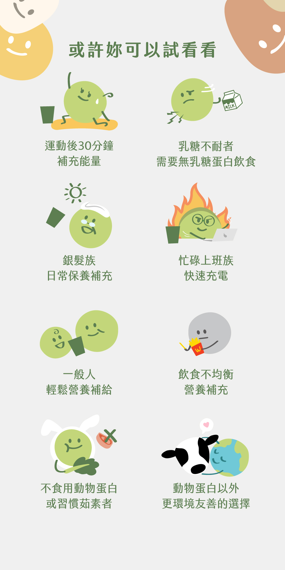。首創複合式植物蛋白,保留更豐富的植物營養,完美蛋白比例,效率補充蛋白質