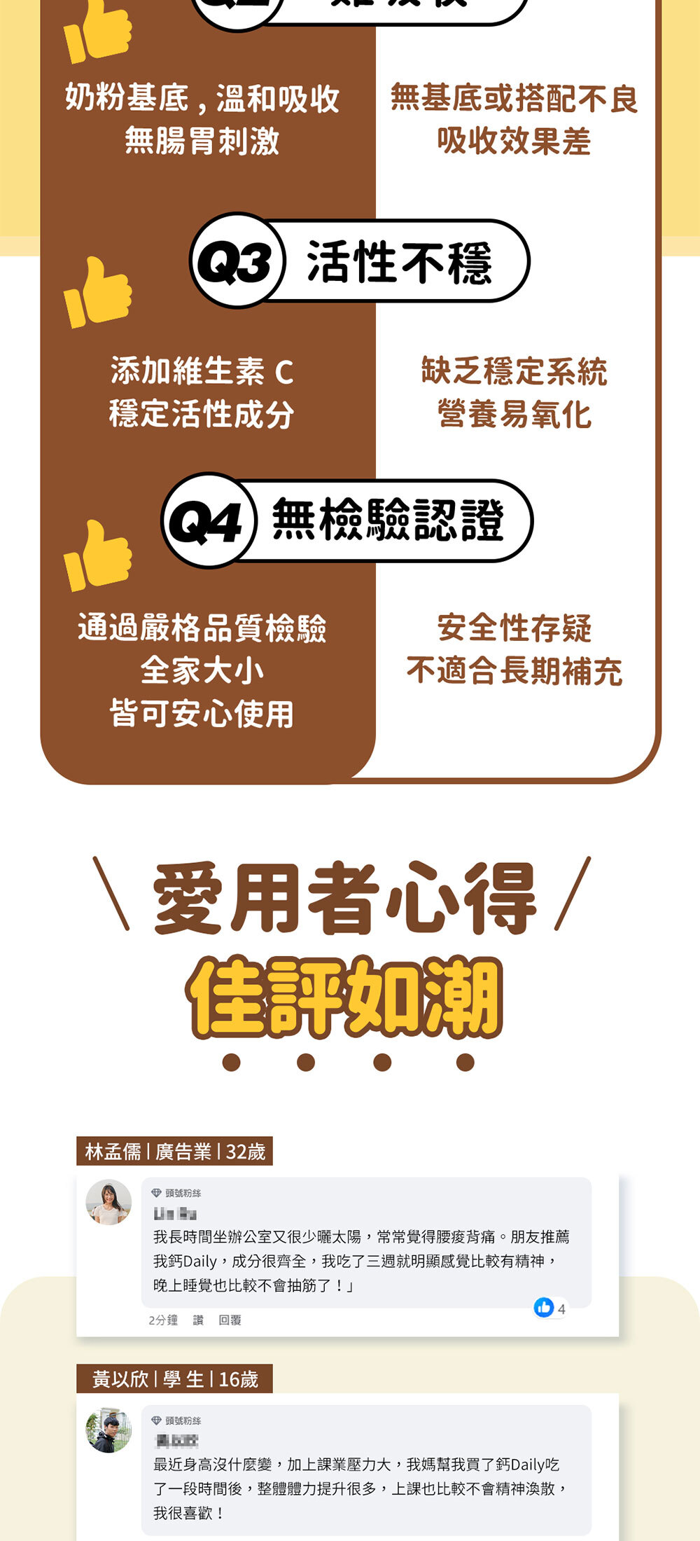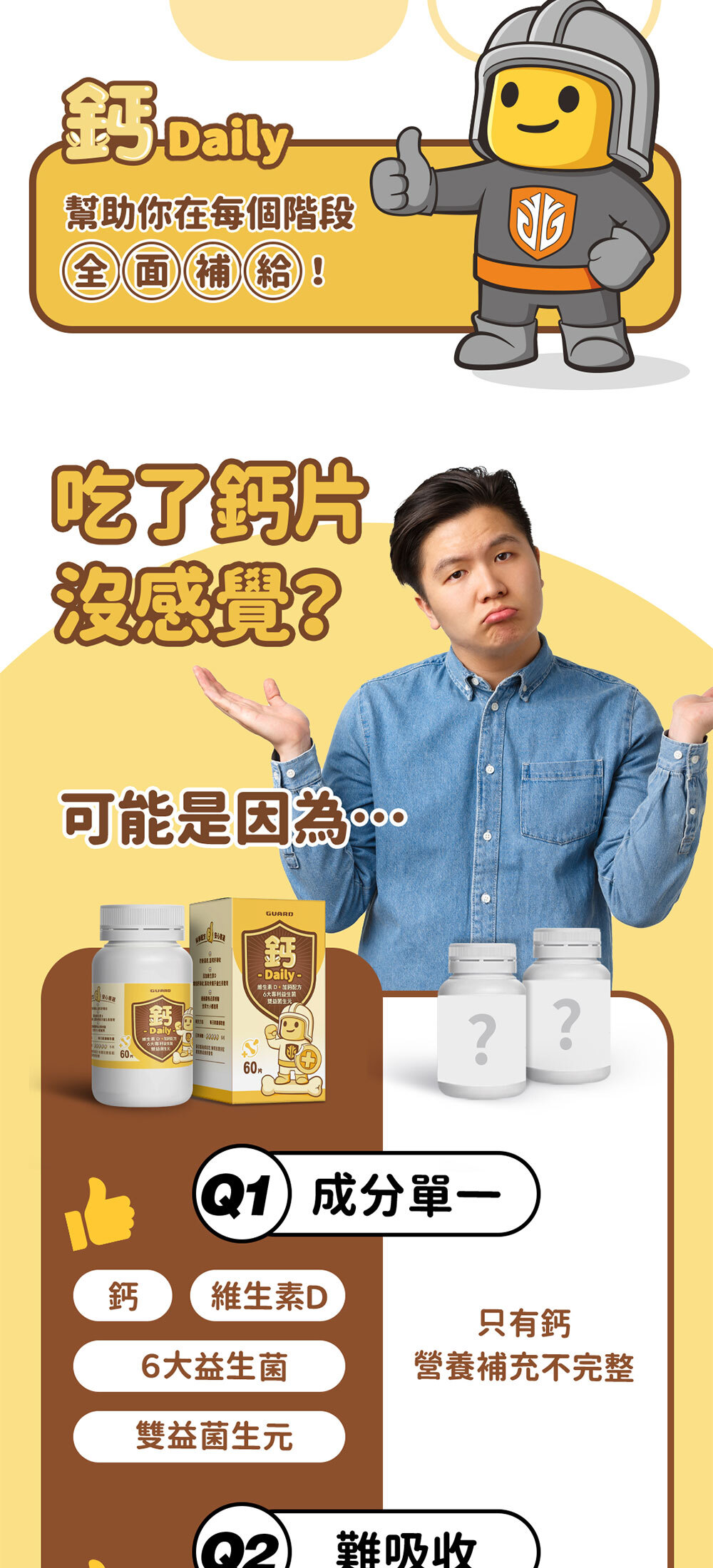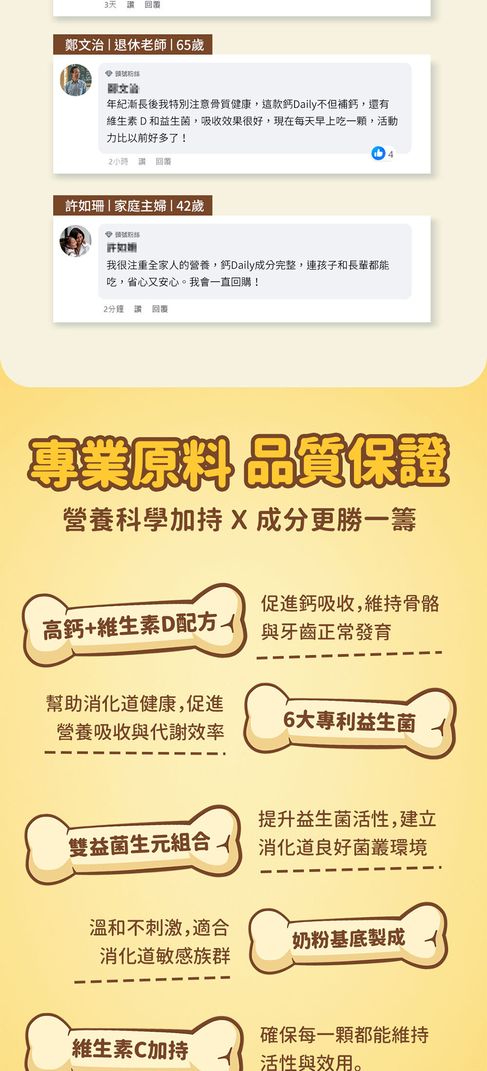 ■ 高鈣+維生素D+雙益菌生元配方,營養科學加持